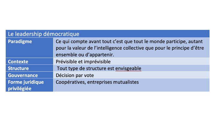Le leadership démocratique ou la démocratie organisationnelle participative