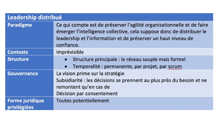 · Le leadership distribué qui horizontalise la structure ou crée un réseau